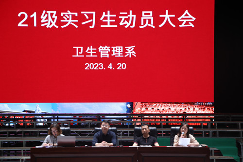 为顺利推进我系学生的实习工作,必赢76net线路于2023年4月20日下午在大礼堂召开2021级实习动员会。本次会议由必赢76net线路教学科研办公室副主任白晓燕主持,系主任卢远兴、系党总支副书记吴永明、系副主任刘定梅及2021级全体学生参加本次会议。